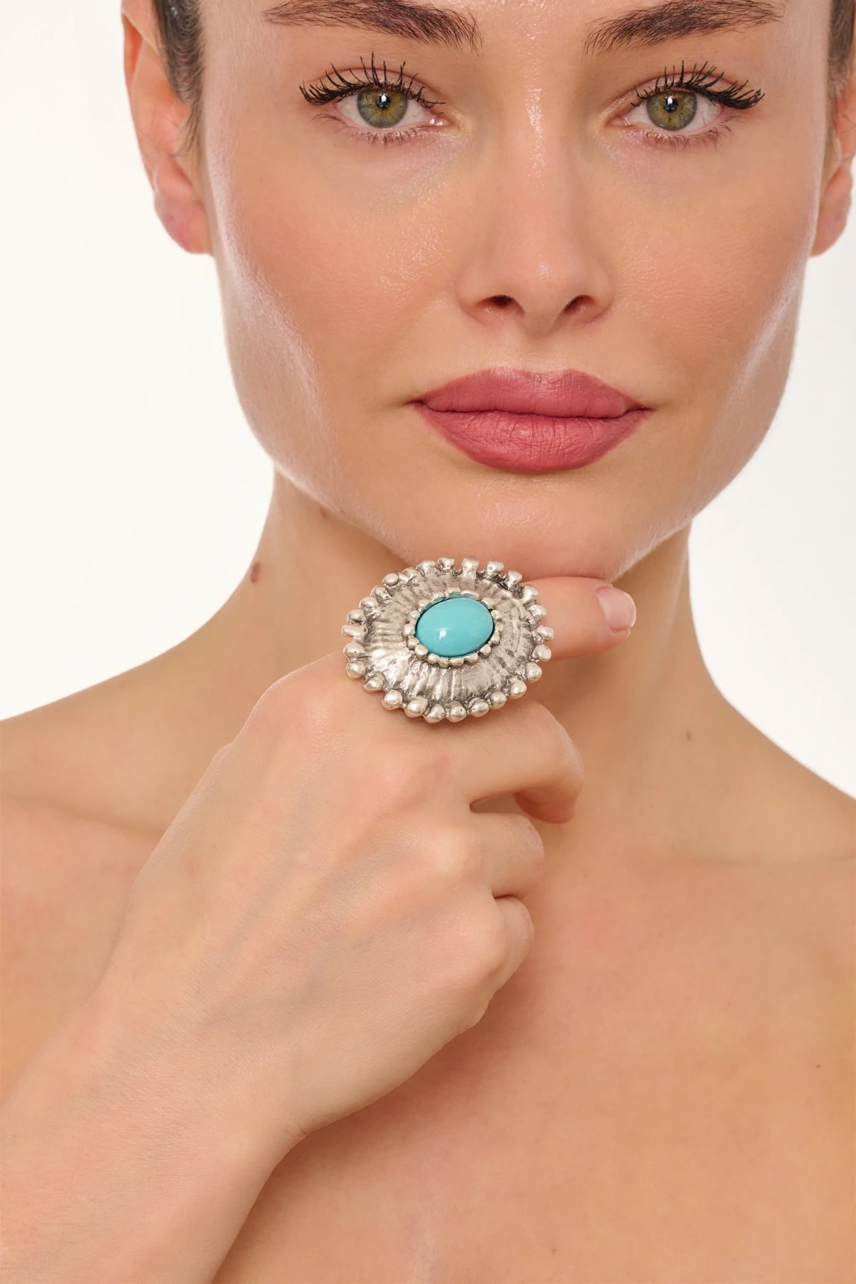 Kiraz Turquoise Stoned Silver Plated Eye Ring