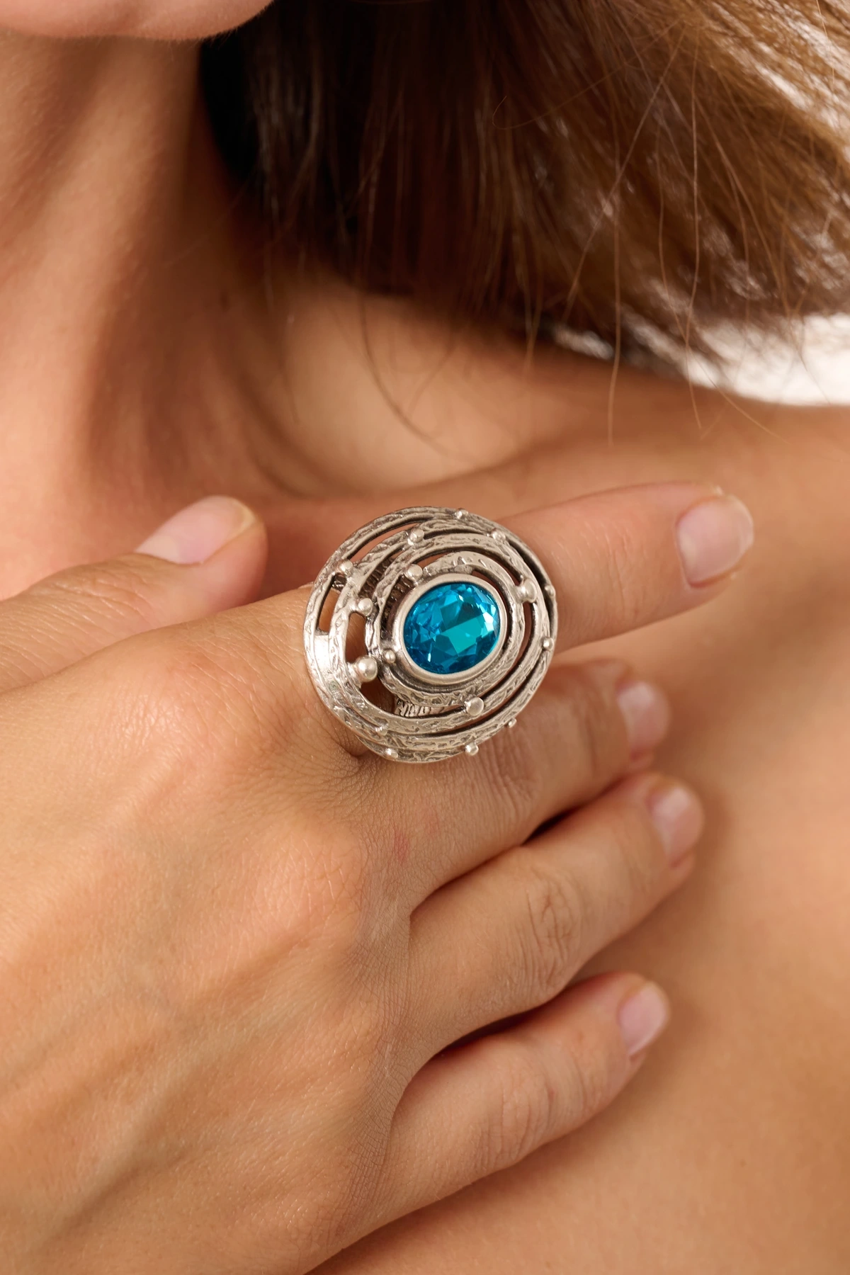 Kiraz Turquoise Stoned Silver Plated Eye Ring