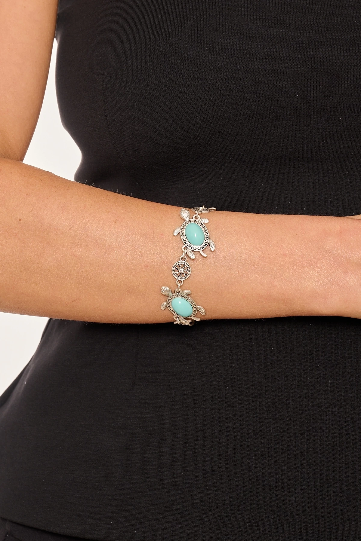 Kiraz Turquoise Stoned Silver Plated Turtle Bracelet
