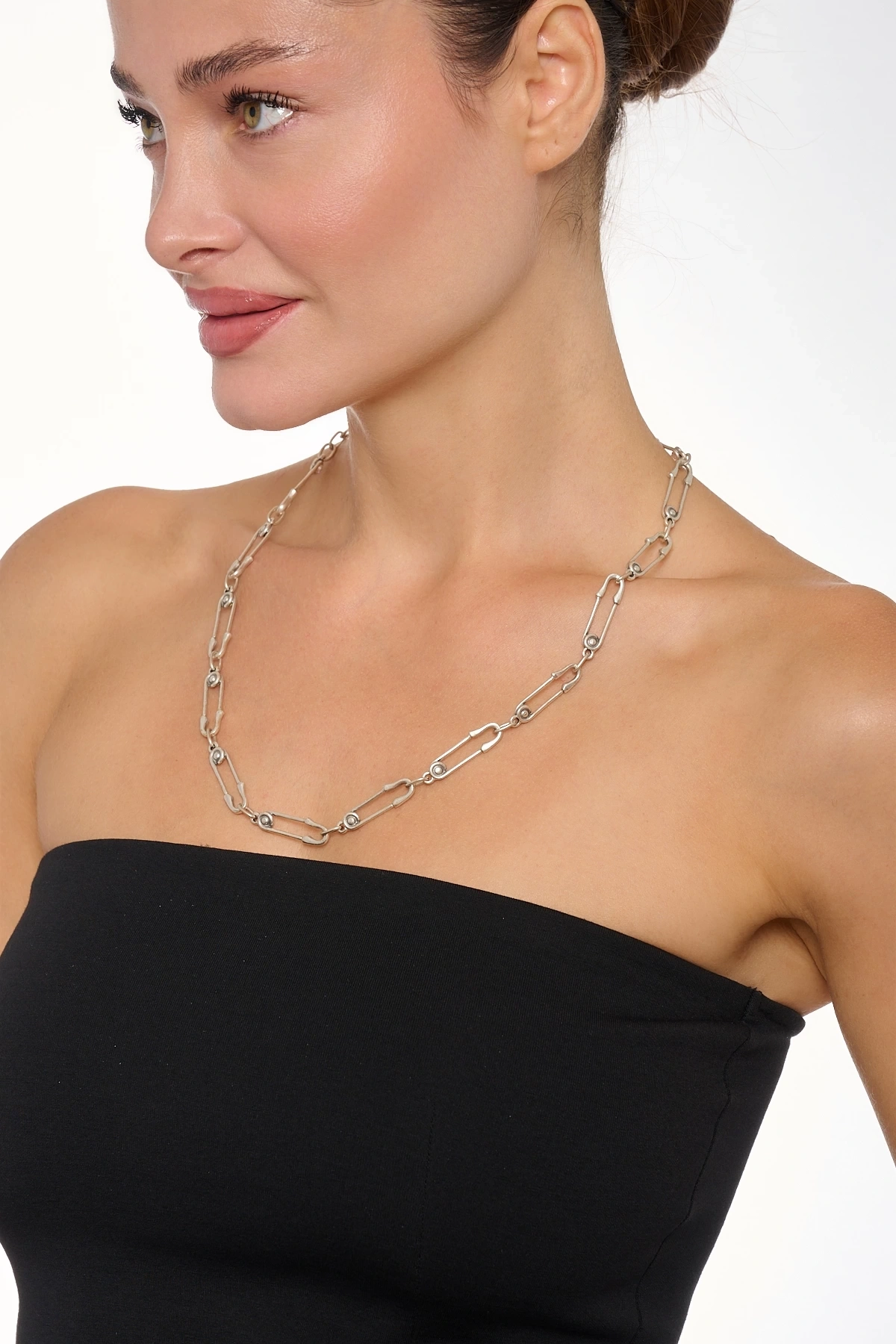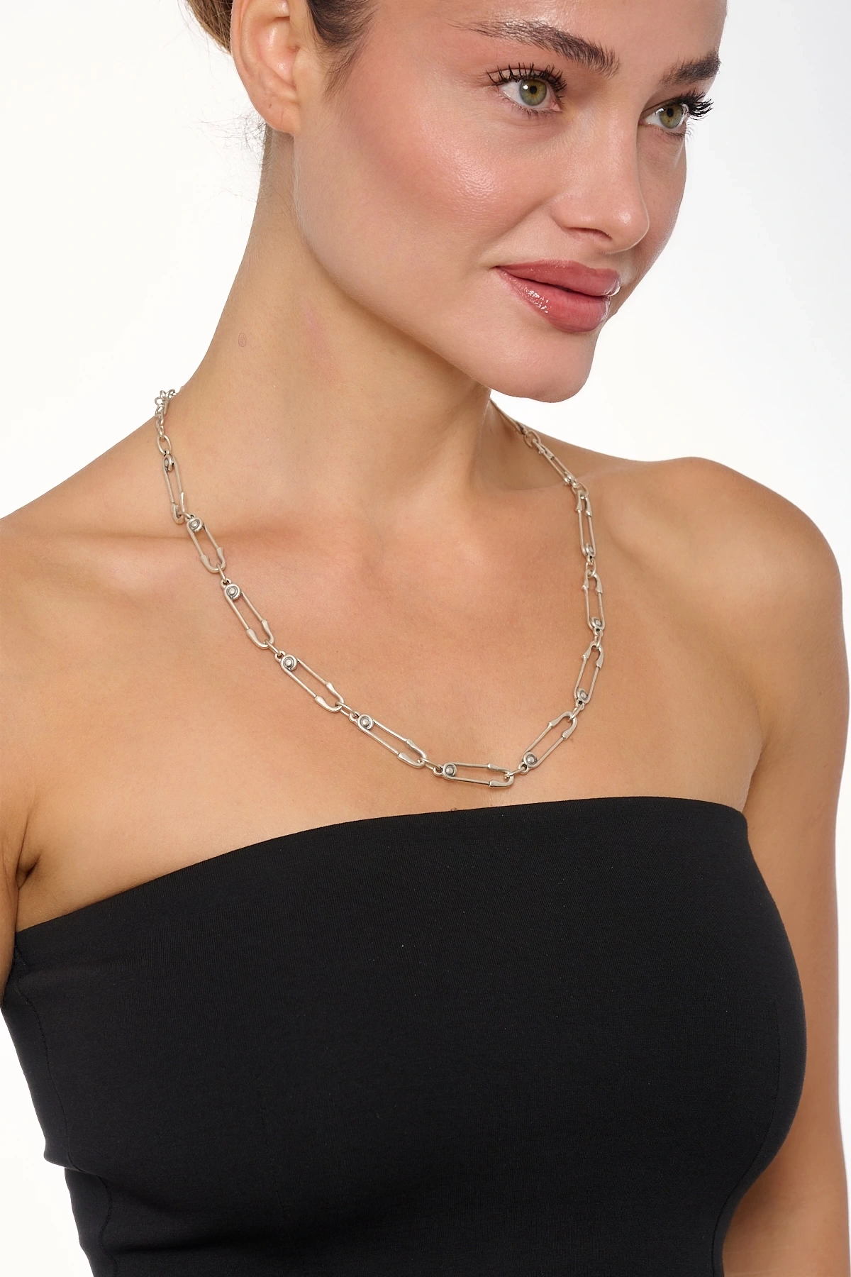 Kiraz White Crystal Stoned Silver Plated Hook Necklace
