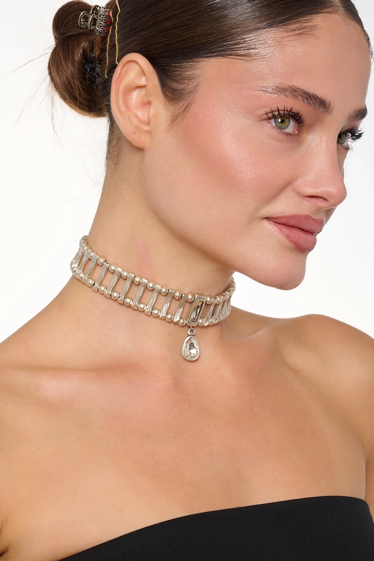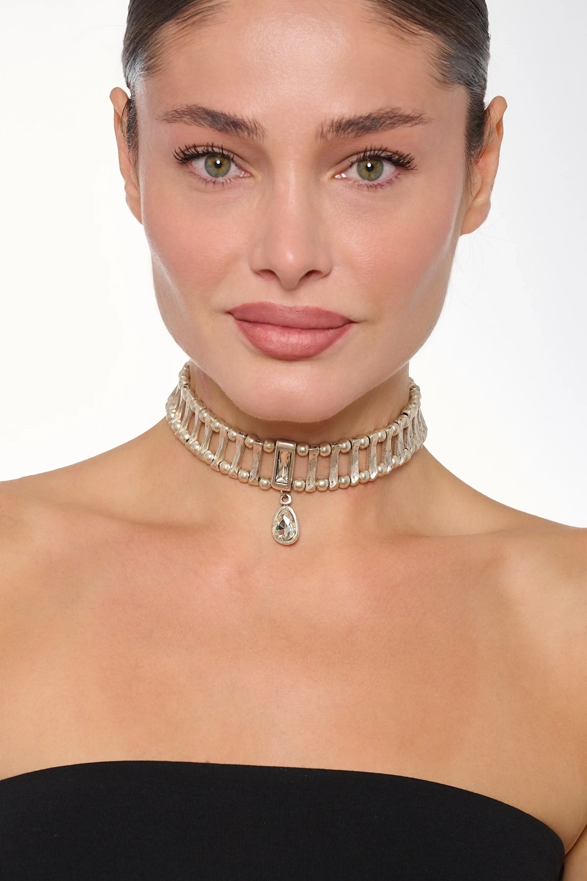 Kiraz White Crystal Stoned Silver Plated Necklace