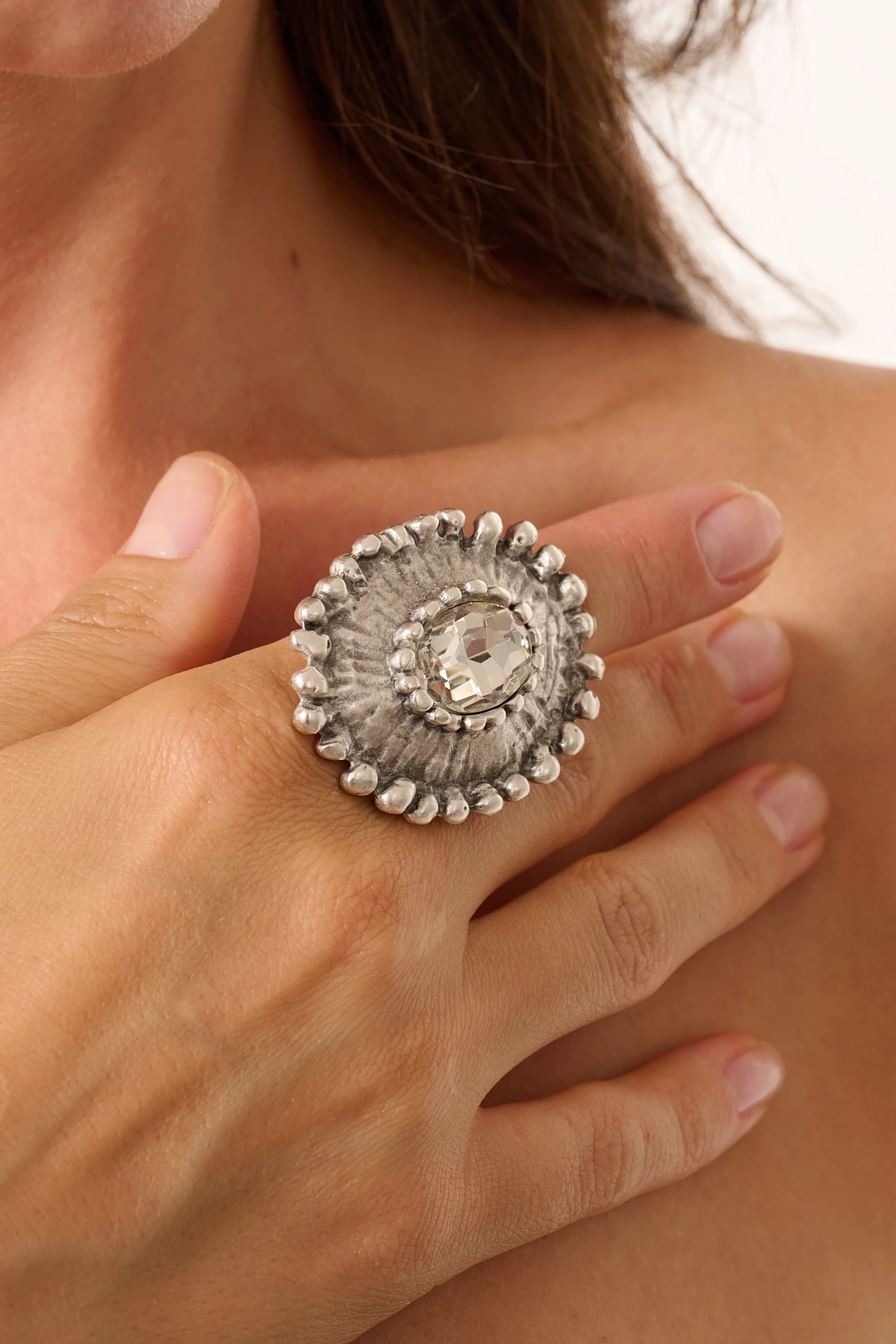 Kiraz White Crystal Stoned Silver Plated Ring