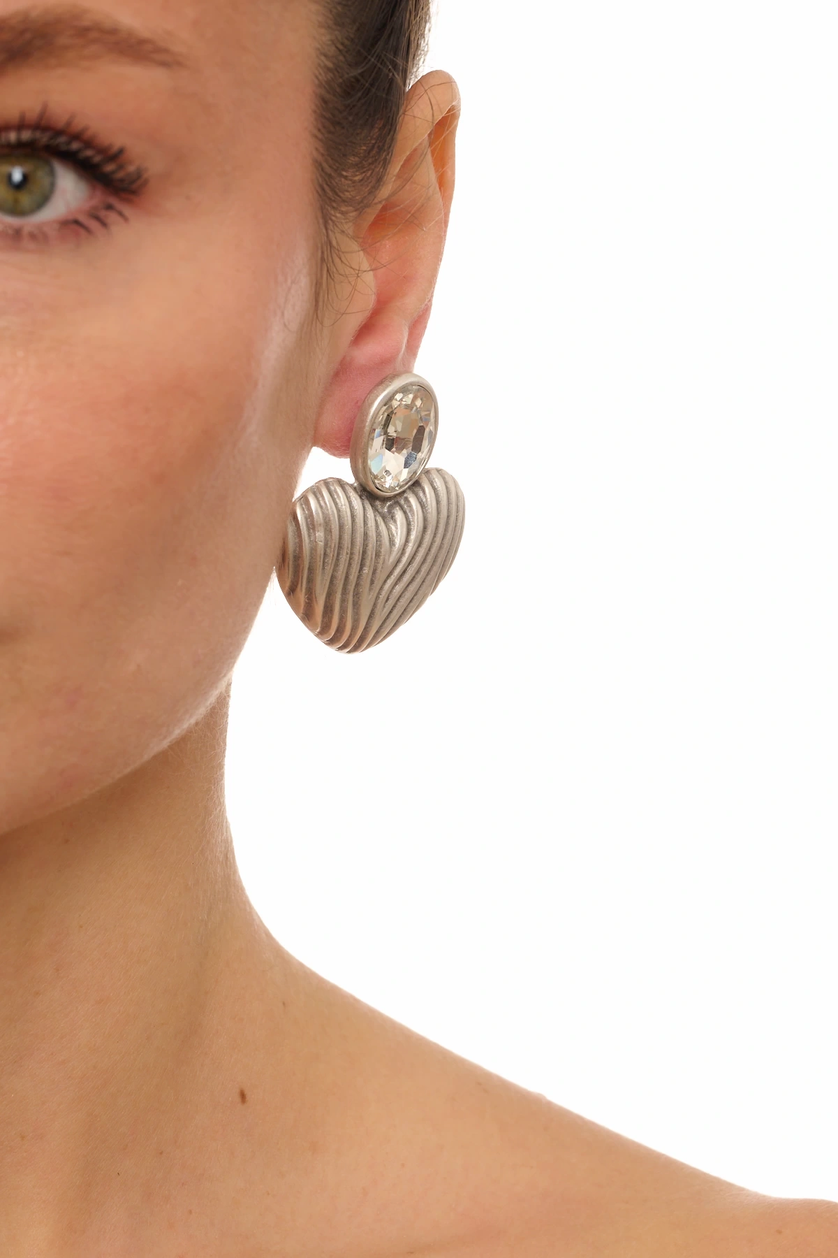 Kiraz White Crystal Stoned Silver Plated Heart Earring