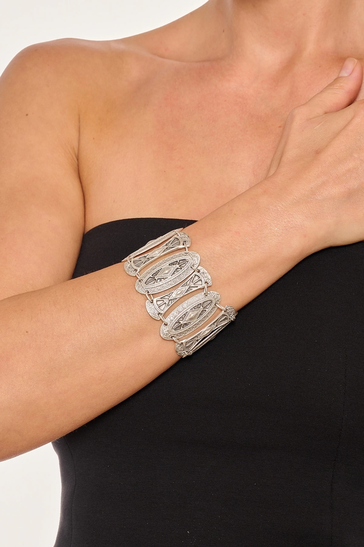 Kiraz Smoked Crystal Stoned Silver Plated Bracelet