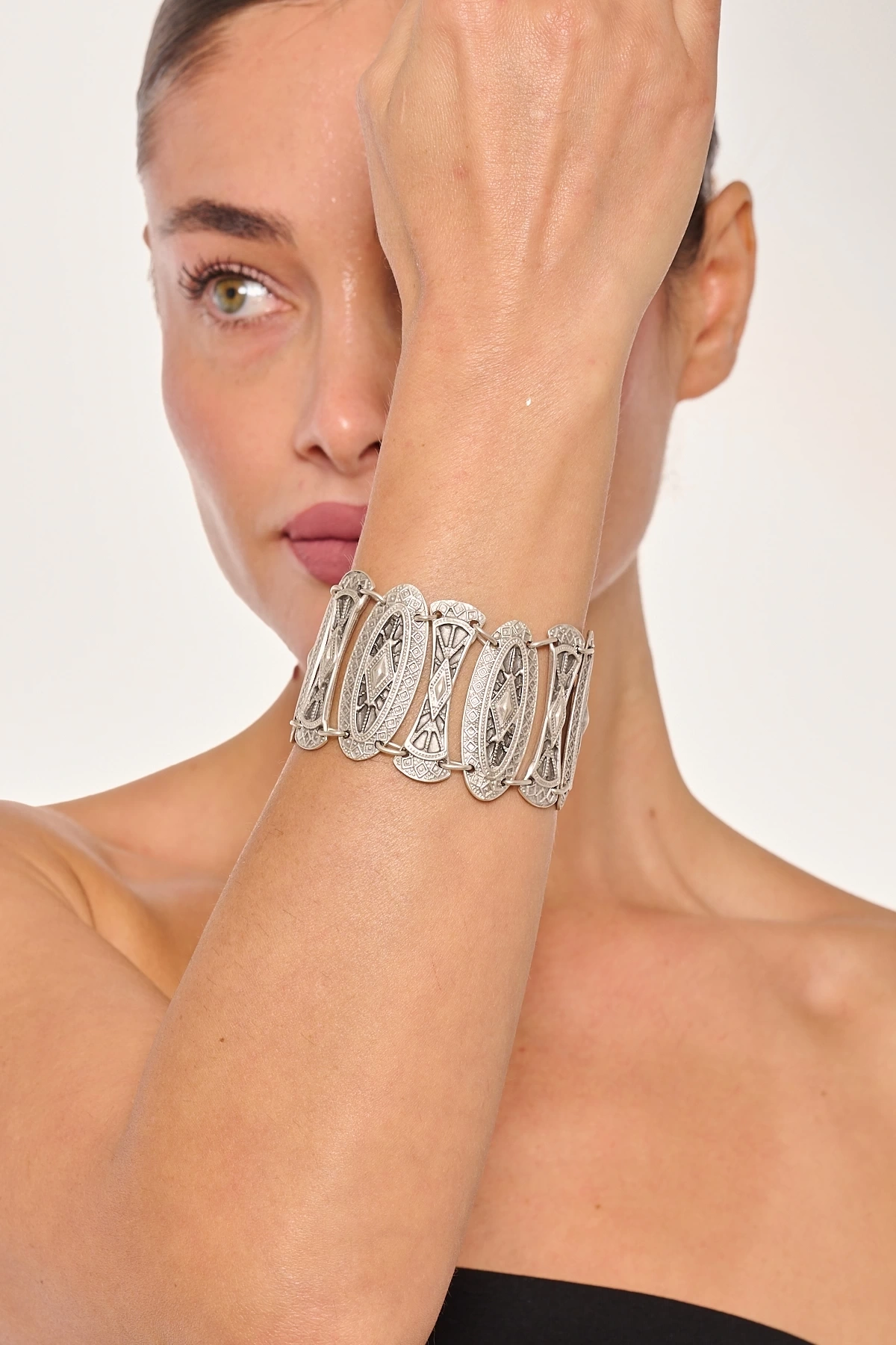 Kiraz White Crystal Stoned Silver Plated Bracelet