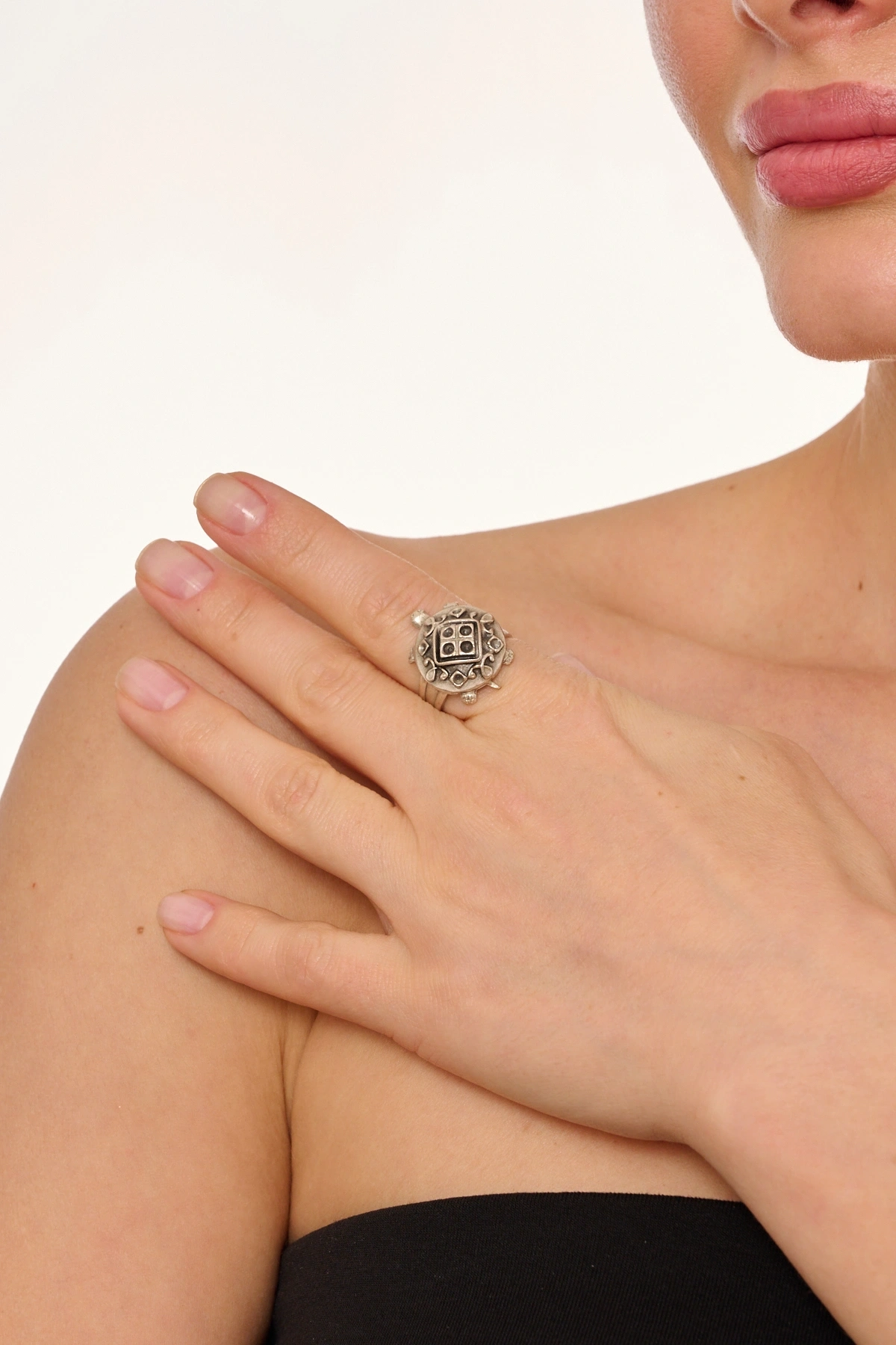 Kiraz Hematite Crystal Stoned Gold Plated Ring