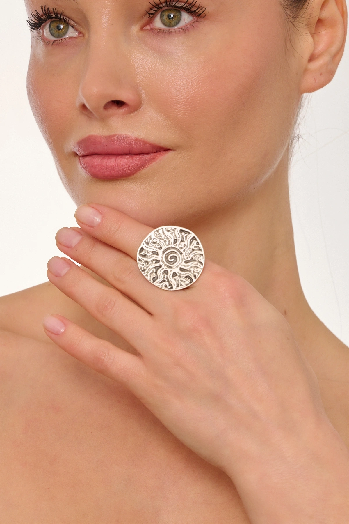 Kiraz Navy Blue Stoned Silver Plated Ring