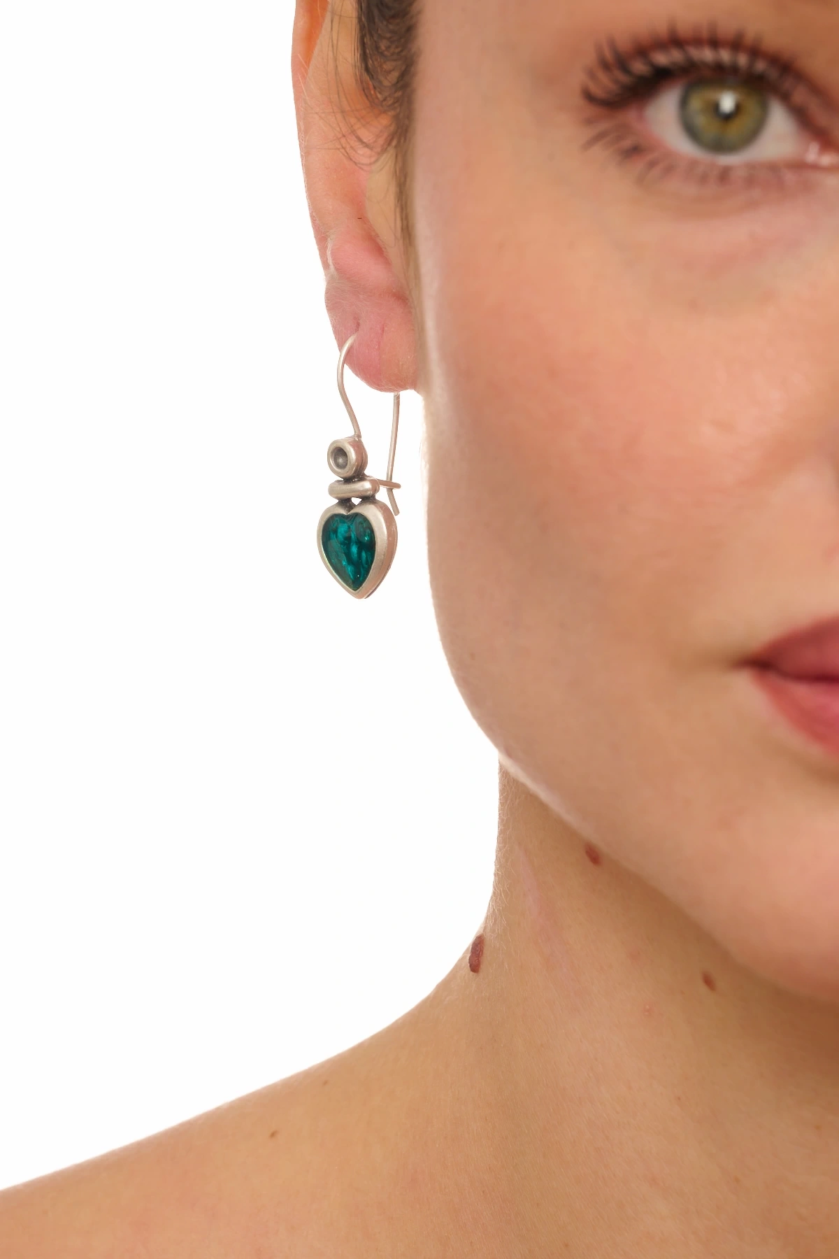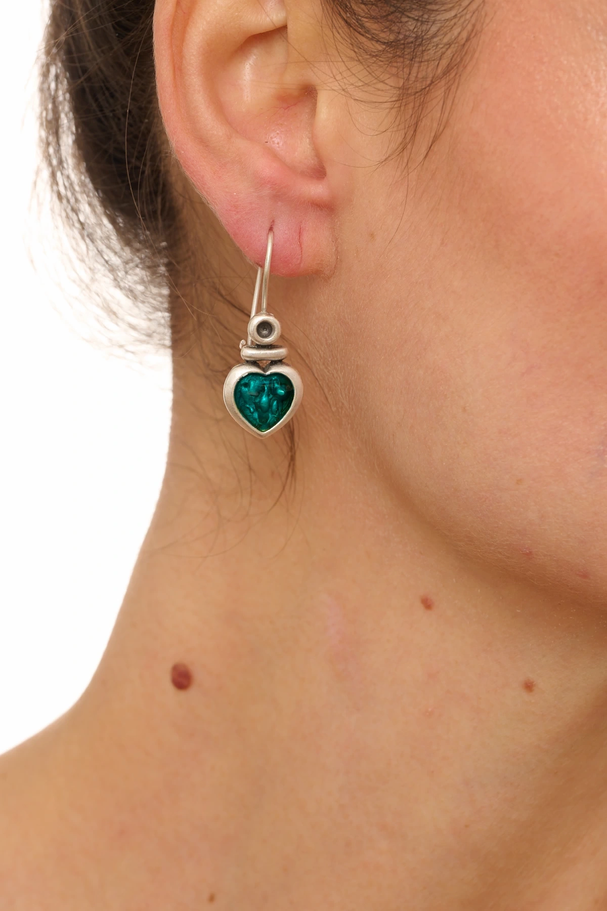 Kiraz Turquoise Enameled Silver Plated Heart Earring