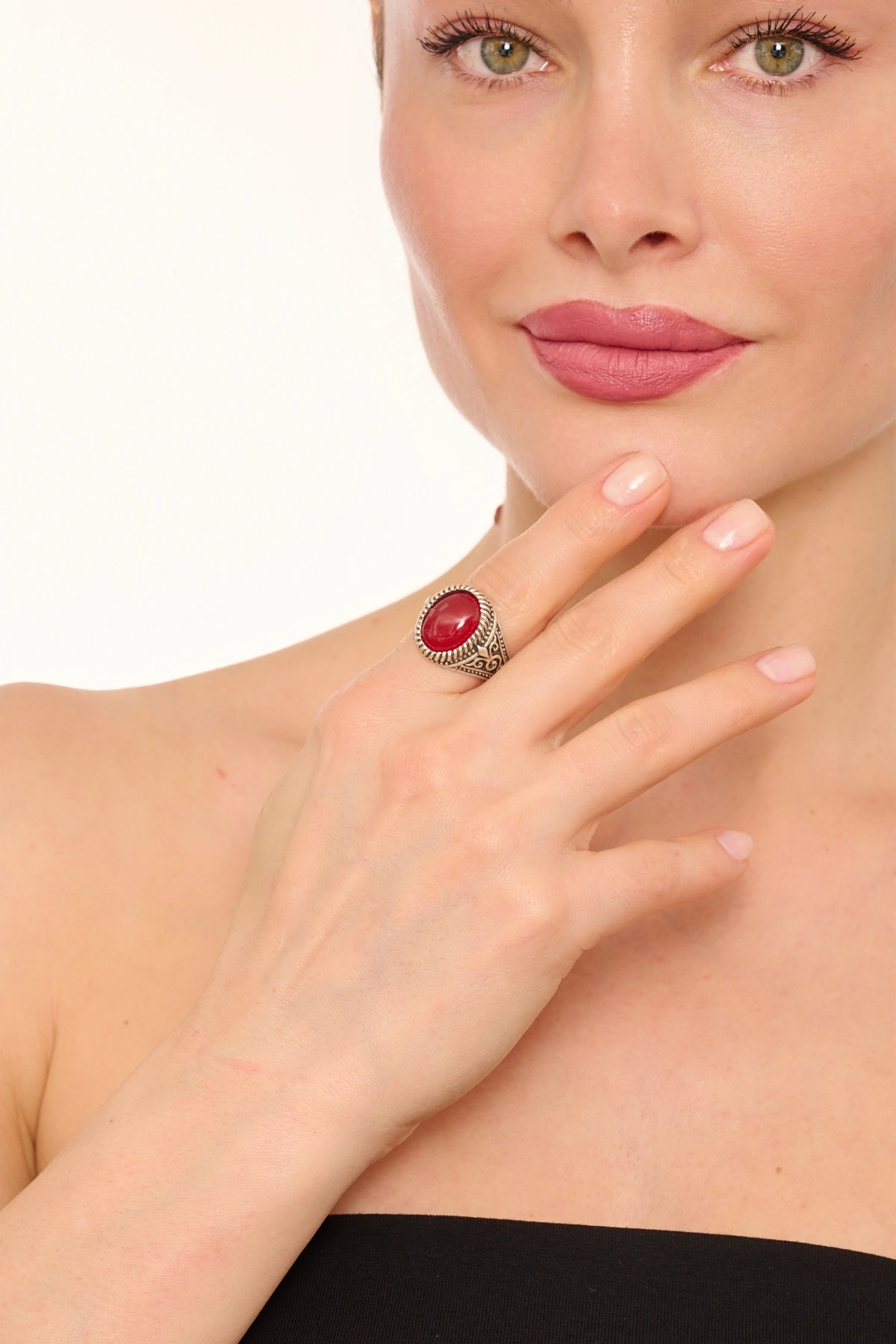 Kiraz Burgundy Stoned Silver Plated Ring