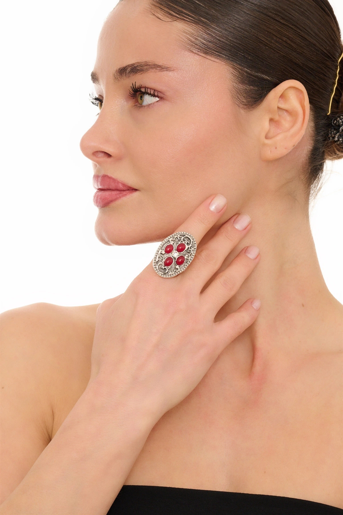Kiraz Navy Blue Stoned Silver Plated Ring