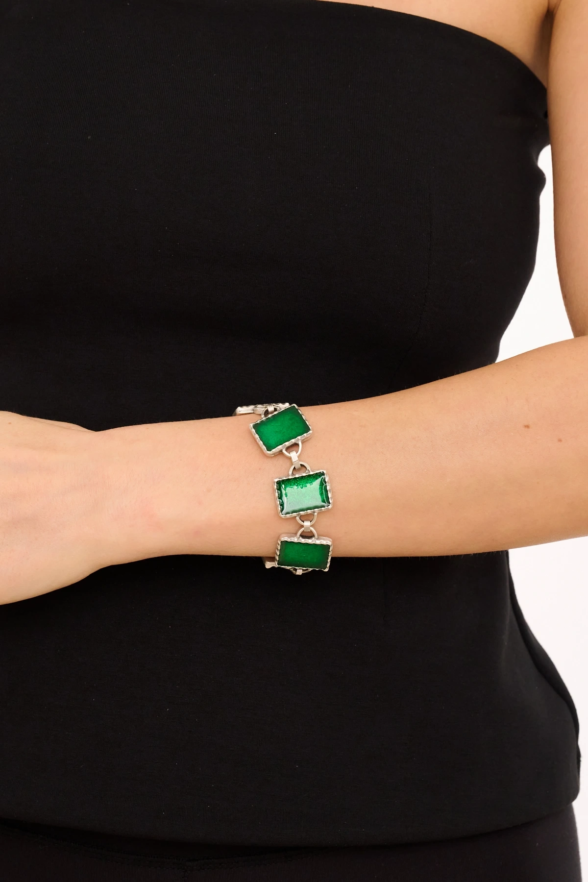 Kiraz Green Enameled Silver Plated Bracelet