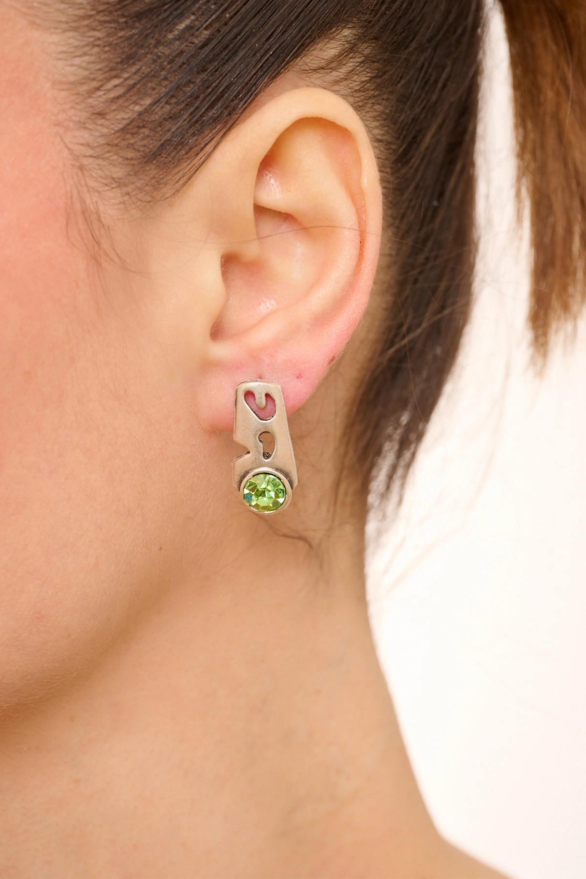 Kiraz Light Green Crystal Stoned Silver Plated Earring