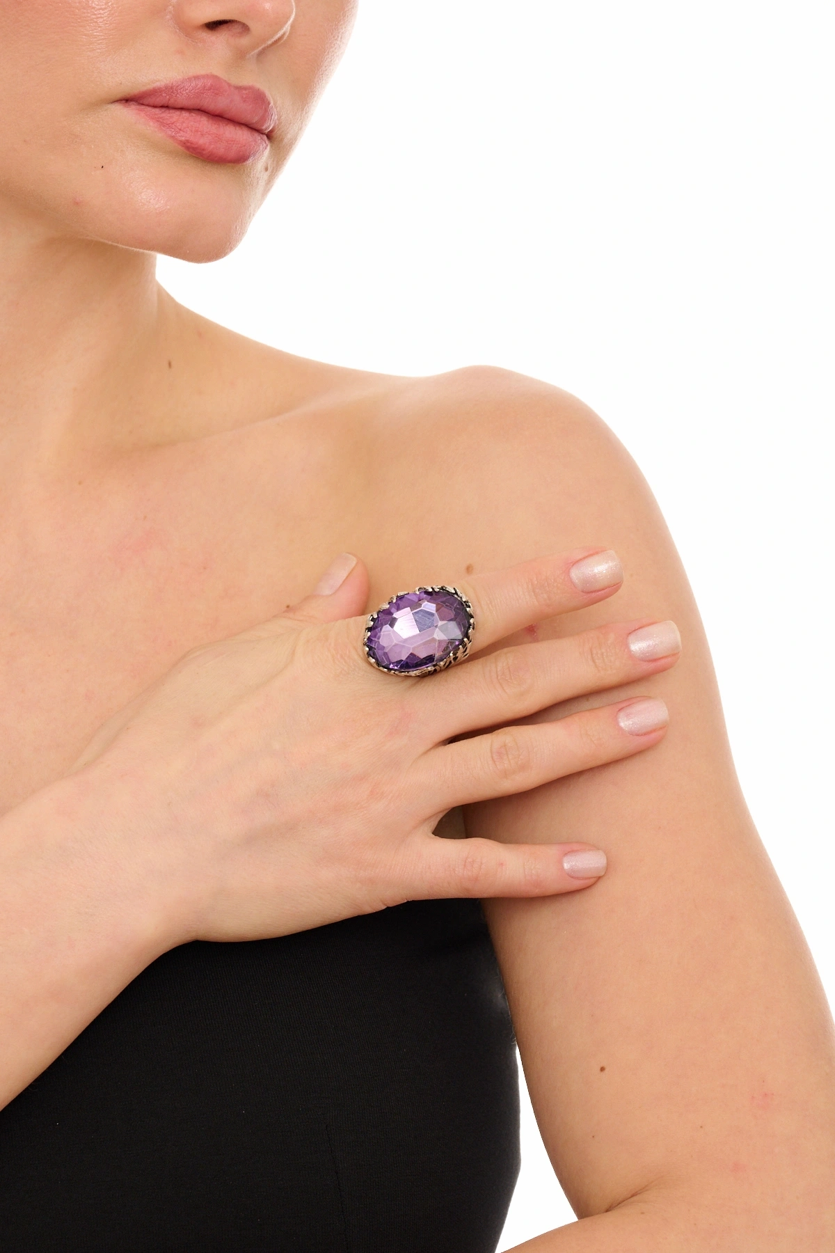 Kiraz Lavander Crystal Stoned Silver Plated Ring
