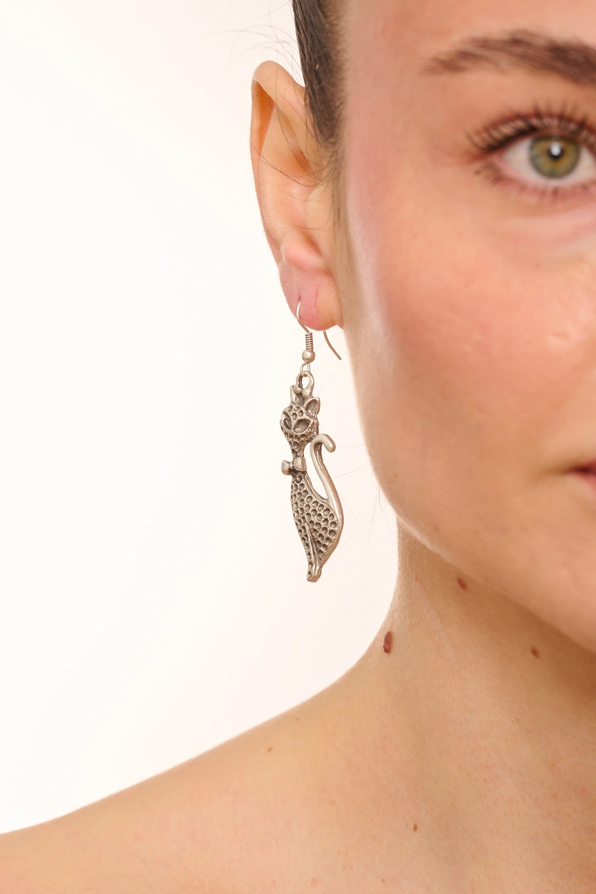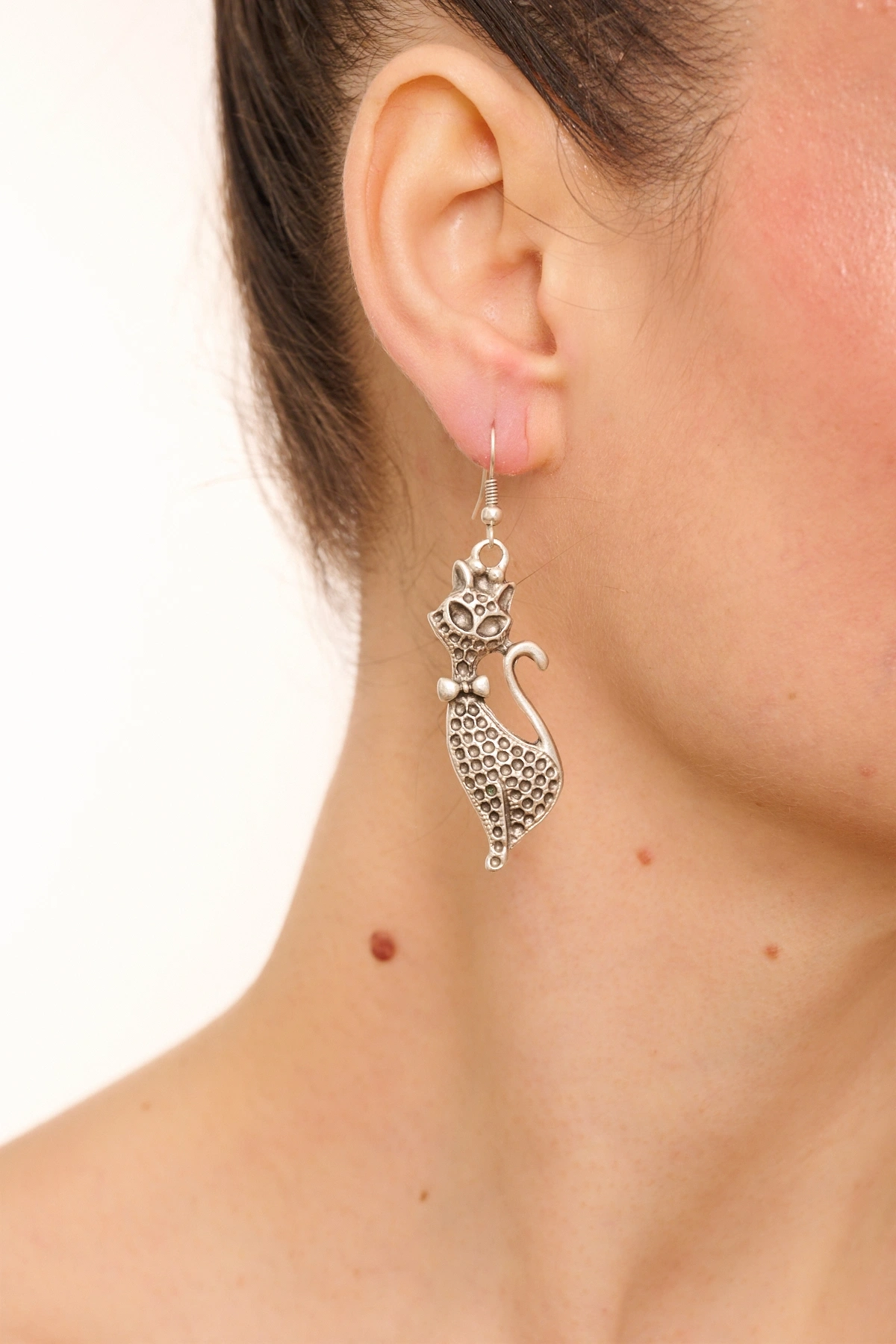 Kiraz Silver Plated Cat Earring
