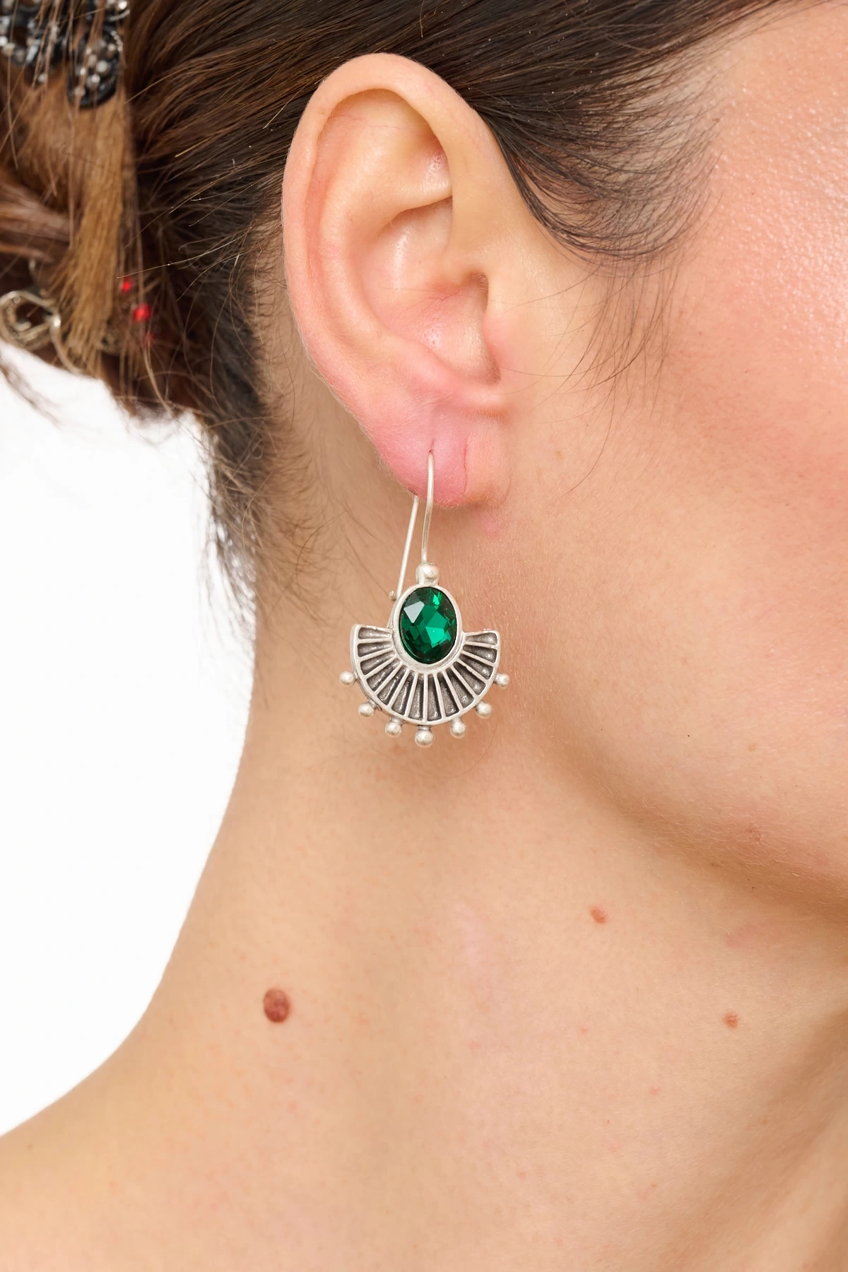 Kiraz Emerald Crystal Stoned Silver Plated Earring