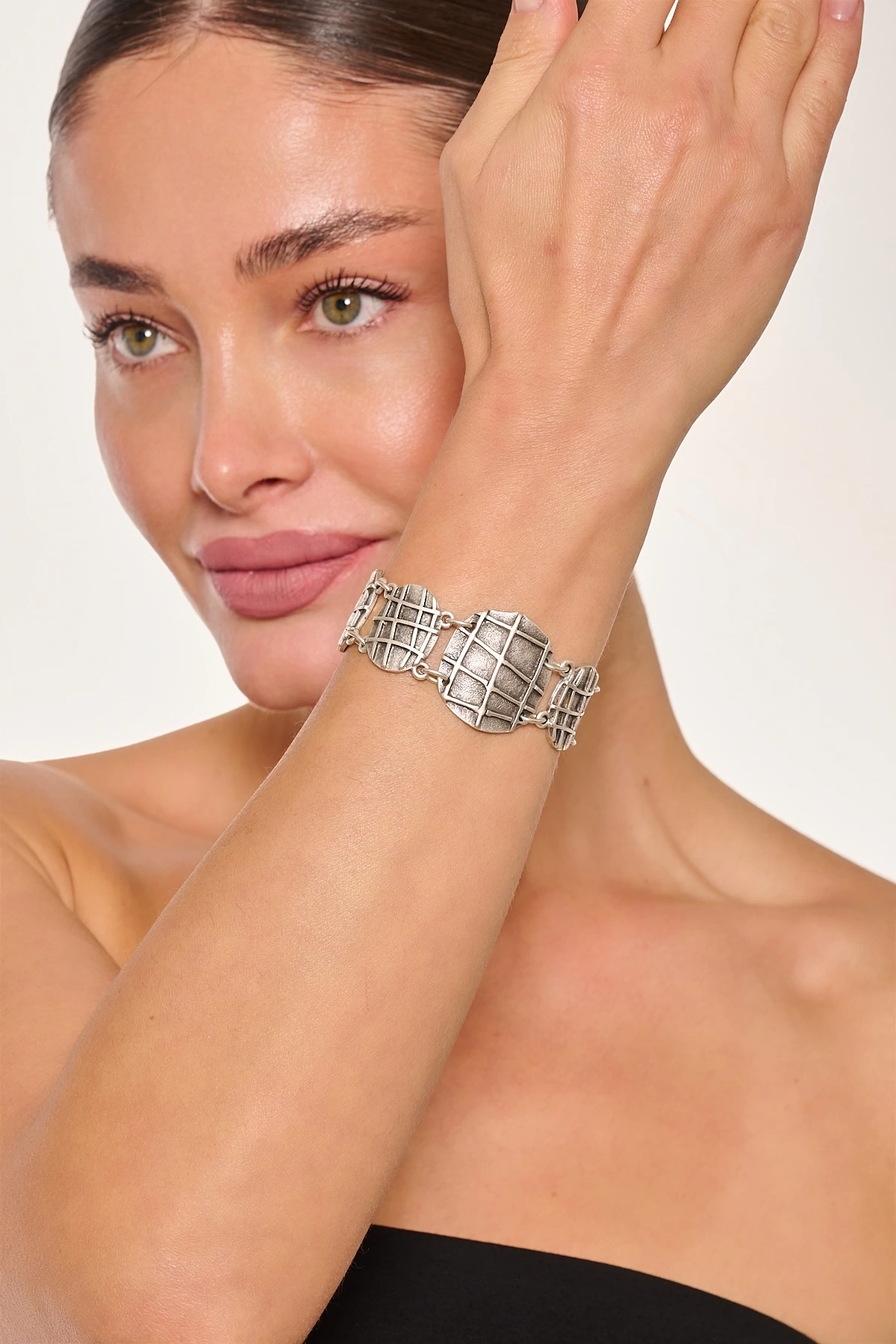 Kiraz Burgundy Stoned Silver Plated Bracelet